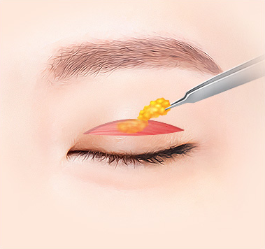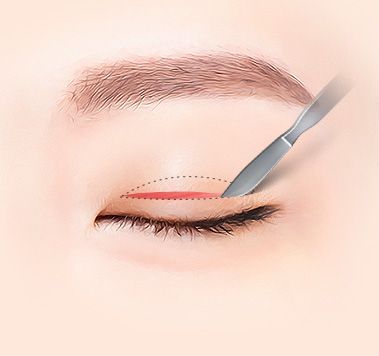 눈꺼풀의 피부를 절개하여 지방이나 처진피부, 근육 등을 적절하게 제거한후