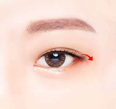 또한 올라간 눈꼬리를 살짝 내려주면 부드러운 눈매와 선한 인상으로 변화할 수 있습니다.